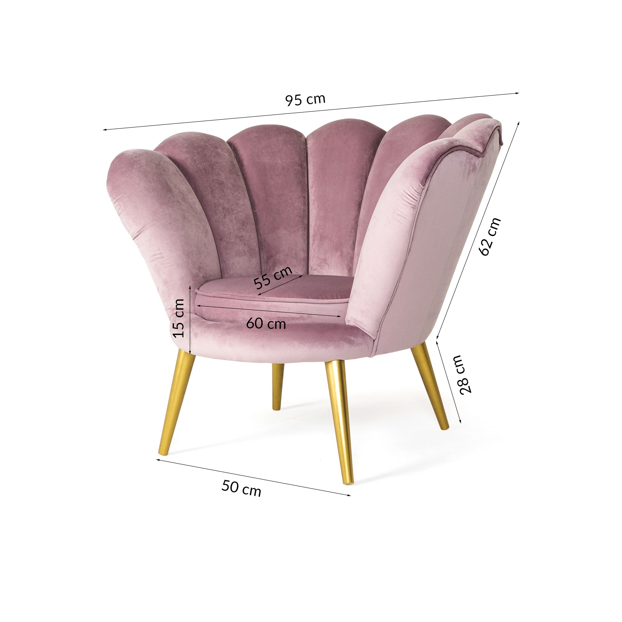 Wygodny fotel posiada obicie z tkaniny welurowej w kolorze różowym. Welur cechuje niezwykła miękkość w dotyku. To jednak nie wszystkie zalety fotela. Już sam jego wygląd i design zwraca na siebie uwagę. Doskonale więc odnajdzie się we wnętrzach miłośników stylu glamour.