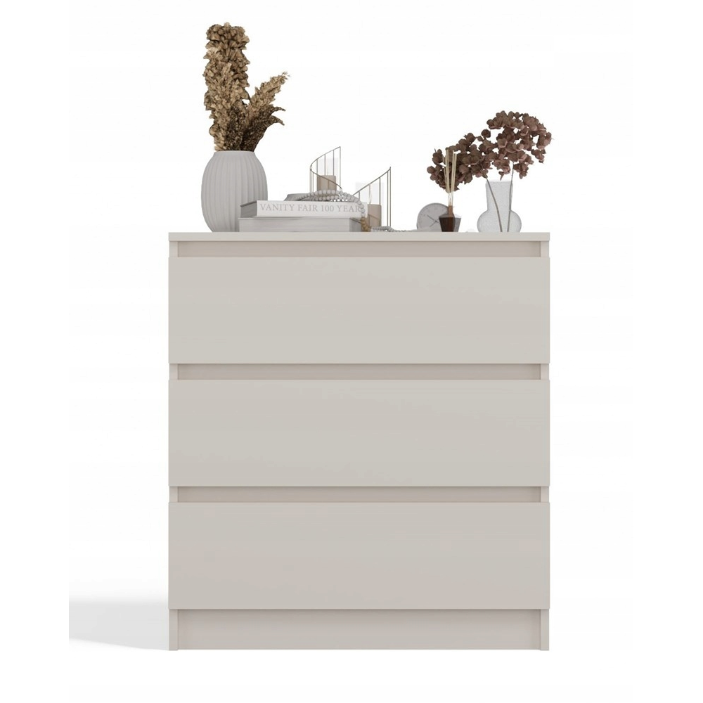 - Bezuchwytowe, fronty szuflad zapewniają wygodne użytkowanie i podkreślą modernistyczny charakter wnętrza.