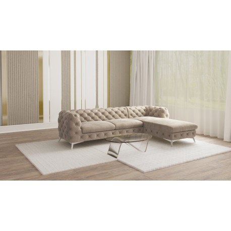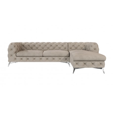 Mebel Chesterfield, inspirowany tradycyjnym, brytyjskim stylem nada wnętrzu szykownej przytulności. Modne pikowanie to detal, który nadaje sofie klasy, a także tworzy przyjemne dla oka zaokrąglenia. Dopełnieniem stylu są wysokie, metalowe nóżki.