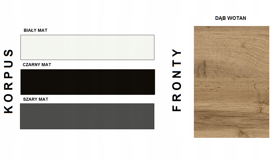 - Korpus mat – płyta wiórowa laminowana obustronnie o grubości 18 mm,