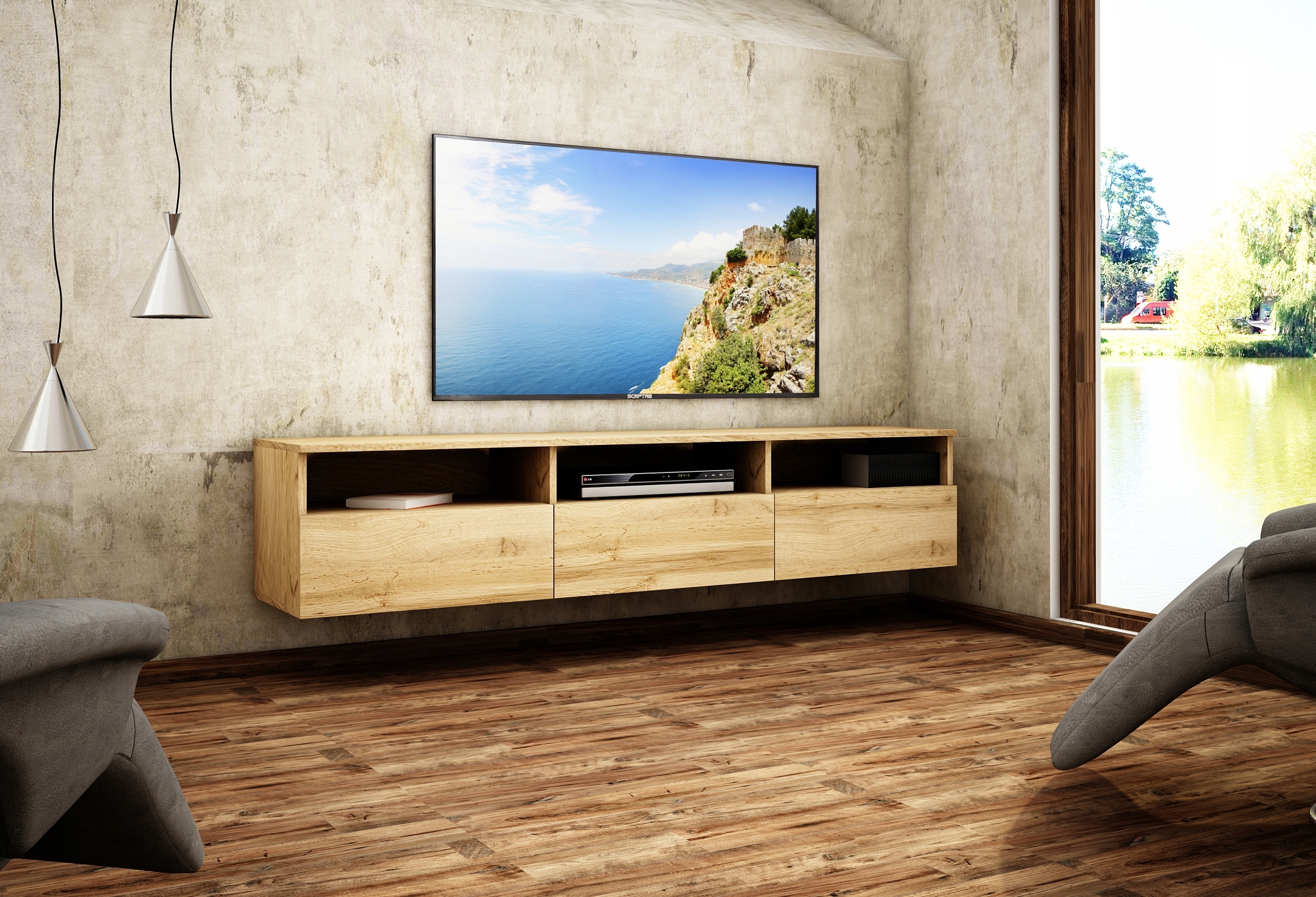 - Całkowite wymiary szafki: szerokość: 140/160/180/200 cm, wysokość: 37 cm, głębokość 33 cm