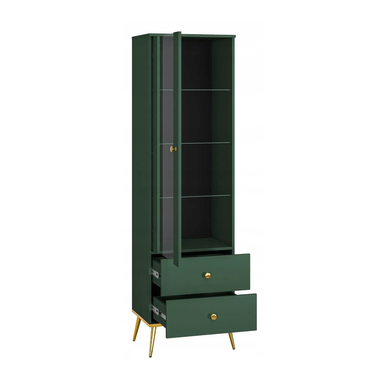 Solidna konstrukcja z dbałością o detale – od precyzyjnego osadzenia szyb po płynne mechanizmy otwarcia – gwarantuje trwałość i funkcjonalność. Witryna doskonale sprawdza się zarówno w salonach, jak i przedpokojach, łącząc praktyczność przechowywania z estetyką designerskiego wystawiennictwa, tworząc harmonijny akcent kolorystyczny w nowoczesnej przestrzeni.