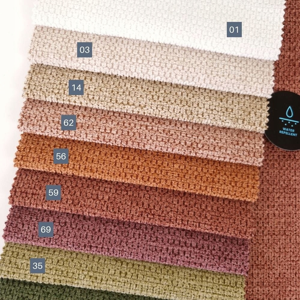 Aragon 01 (biały), Aragon 03 (beżowy jasny), Aragon 14 (kawa z mlekiem), Aragon 20 (beżowy), Aragon 35 (oliwkowy), Aragon 39 (zielony), Aragon 56 (pomarańczowy), Aragon 59 (ceglasty), Aragon 62 (różowy jasny), Aragon 69 (różowy), Aragon 70 (błękitny), Aragon 72 (brudny błękitny), Aragon 74 (niebieski), Aragon 75 (miętowy jasny), Aragon 79 (granatowy), Aragon 80 (szaro-beżowy), Aragon 83 (szary jasny), Aragon 90 (szary melanż), Aragon 93 (szary), Aragon 97 (szary ciemny), Aragon 99 (czarny)