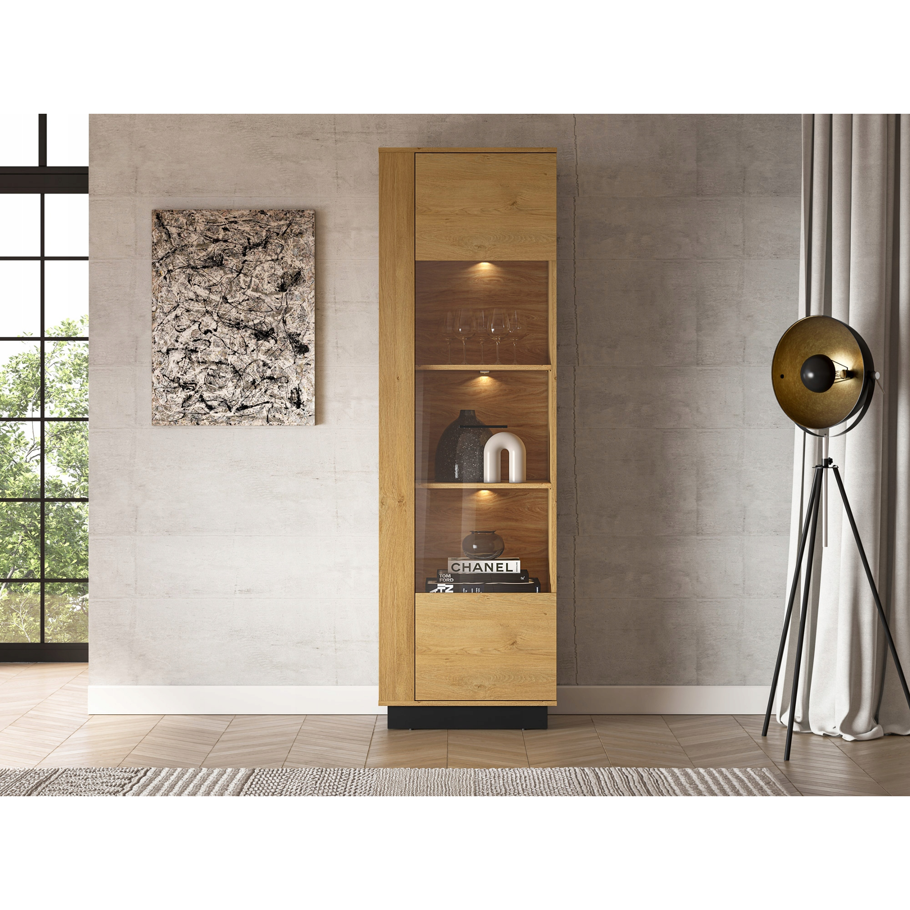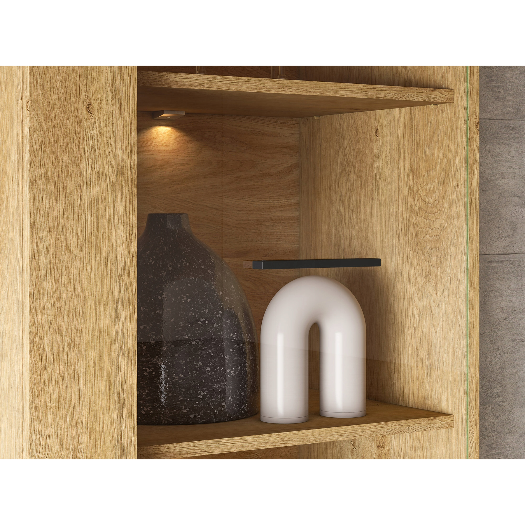 Nowość! Witryna Monet to mebel, dzięki któremu wyeksponujesz swoje ulubione przedmioty. Dwie stabilne półki dzielą przestrzeń za przeszklonymi drzwiczkami na trzy wnęki. Ustawisz w nich kieliszki, kolekcję porcelany lub pamiątki z podróży. Jeśli chcesz dodatkowo podkreślić ulubione gadżety wybierz proponowane przez nas ledowe podświetlenie. Wydobywające się z witryny światło dyskretnie ociepli całe Twoje wnętrze. Dolną część mebla tworzy dwie schowana półka, na której przechowasz zastawę stołową lub obrusy. Prosty styl, uniwersalny wygląd, duża funkcjonalność i wysoka jakość wykonania mebla spełnią wszystkie Twoje oczekiwania.
